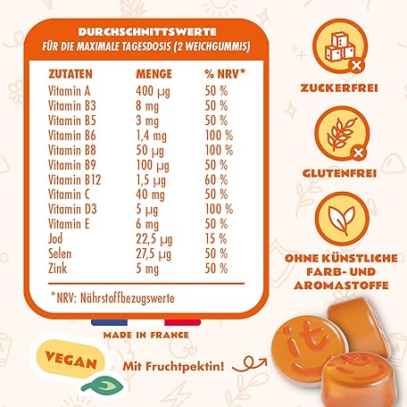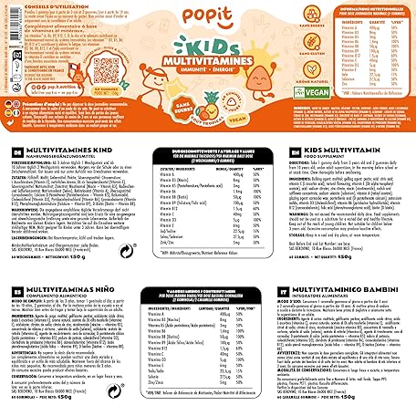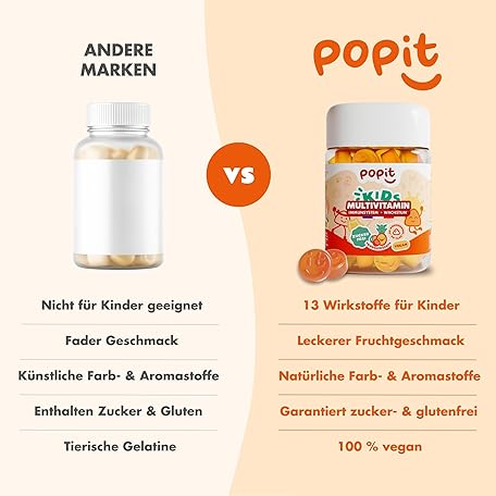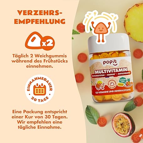 Thông tin sản phẩm POP IT 60 Multivitamin Gummy Bears Children - 13 Vitamins for Children from 3 Years - Sugar Free, Vegan, Vitamin Treatment for 1 Month - Vitamin A, B, C, D, E, Zinc - Vitamins Rubber Multivitamin