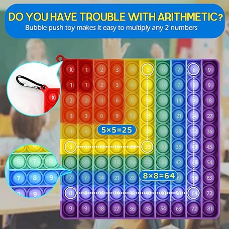 Thông tin sản phẩm Popit XXL Fidget Toys, Pop It, Push Pop Bubble Fidget Sensory Toy, Stress Relief Sensory Toy, Rainbow Multiplication Board, Multiplication for Children, Learning Toy for Addition (A2)