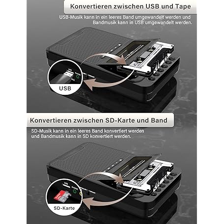 Sản phẩm Portable Cassette Player Cassette Recorder, Recording to Cassette/USB/SD Card via Microphone, Cassette to MP3 Music via USB/SD Card/PC, Cassette Recorder with Extendable Handle (Black) đang được bán với giá ưu đãi là $54.3038 tại nước Đức.