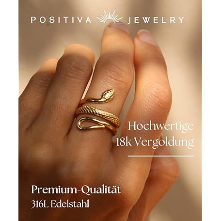 Sản phẩm Positiva Jewelry Snake Ring Made of 18 K Gold-Plated Stainless Steel for Women, Symbol of Renewal & Power, Waterproof and Adjustable Size, No Staining and Tarnishing, Includes Elegant Ring Box, Gold đang được bán với giá ưu đãi là $26.7486 tại nước Đức.