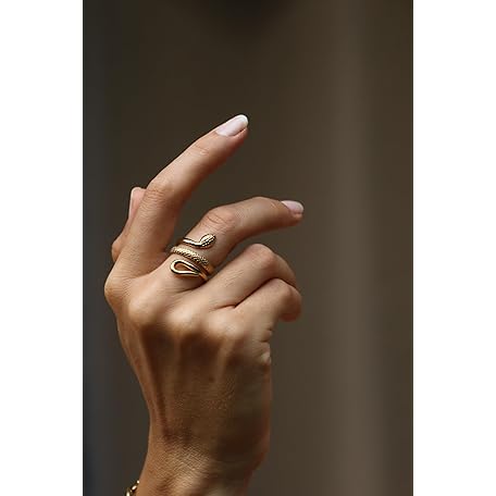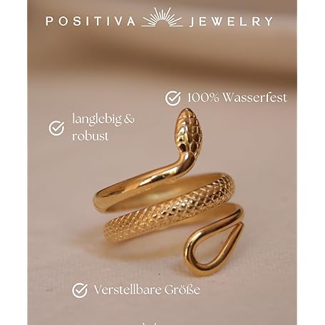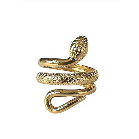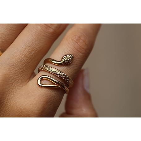 Thông tin sản phẩm Positiva Jewelry Snake Ring Made of 18 K Gold-Plated Stainless Steel for Women, Symbol of Renewal & Power, Waterproof and Adjustable Size, No Staining and Tarnishing, Includes Elegant Ring Box, Gold