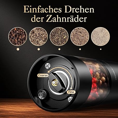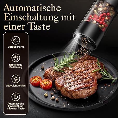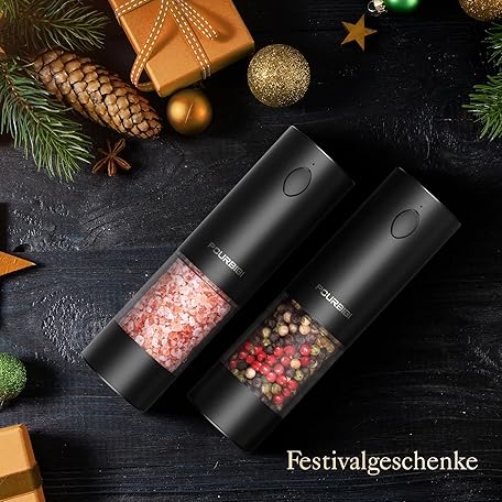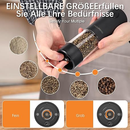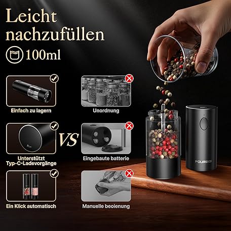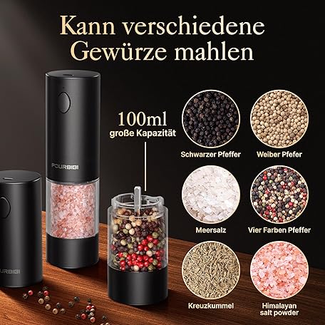 Sản phẩm Pourbibi Electric Salt and Pepper Mills Set of 2 with USB-C Charge - 100 ml, 6 Levels Grinding Degree, One-Hand Operation, for Spices Salt Mill LED Lighting, Ceramic Grinder đang được bán với giá ưu đãi là $24.1653 tại nước Đức.