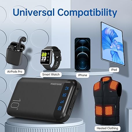 Thông tin sản phẩm Power Bank 10000mAh Handy Tragbares Ladegerät Externer Akku Pack mit 2 USB 2.4A Ausgängen und USB C Eingang Kompatibel für Huawei iPhone 12 11 X iPad Samsung S20 Android Tablette (Black, Large)