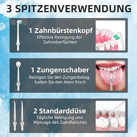 Sản phẩm Powerful Oral Irrigator, Electric Tooth Cleaner, 4 Modes & 4 Nozzles, Wireless Oral Irrigator, IPX7 Waterproof Water Flosser, 310 ml, Removable Water Tank for Ten Home and Travel Use đang được bán với giá ưu đãi là $25.3316 tại nước Đức.