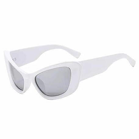 Thông tin sản phẩm PPFVVTV Vintage Cat Eye Punk Sonnenbrille Herren Damen Trendy Fashion Luxus Glitzer Bonbonfarben Reise Sonnenbrille UV400 (Weiß Silber)