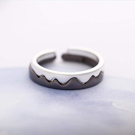 PRAK Women's 925 Sterling Silver Luxury Rings, Silver Black White Pair of Rings Wavy Geometric Mountain Shape for Women Men Adjustable Finger Rings Jewellery Lovers Gift
