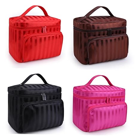 PRETYZOOM wasserdichte Große Kosmetiktasche mit Reißverschluss Koreanisches Streifenmuster Multifunktionaler Kulturbeutel für Damen Reise Organizer aus Strapazierfähigem Nylon in Pink