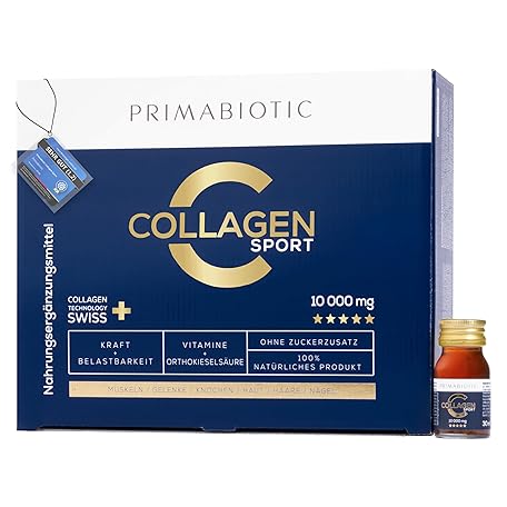 Sản phẩm Primabiotic Collagen Sport - Collagen Shots for Drinking - 10,000 mg with Orthosilicic Acid - For Active People - Pineapple Flavour - 45 kcal per Serving - High Protein Content đang được bán với giá ưu đãi là $107.8228 tại nước Đức.