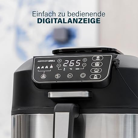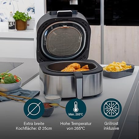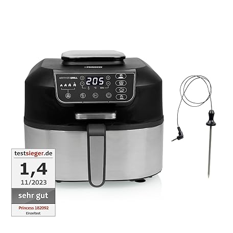 Sản phẩm Princess 2-in-1 Hot Air Fryer and Grill - 4 Programmes - Max 265°C - Includes Thermometer - 1760W - Removable Basket - Silver/Black - 182092 đang được bán với giá ưu đãi là $131.1924 tại nước Đức.