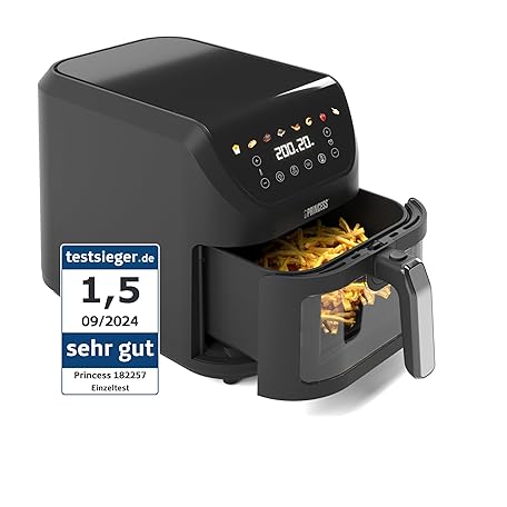 Princess SlimFry Airfryer, 8L Capacity, 2000W, 8 Programmes, Digital Touch Screen, Adjustable Temperature, Viewing Window, Automatic Shut-Off, Dishwasher Safe, 182257