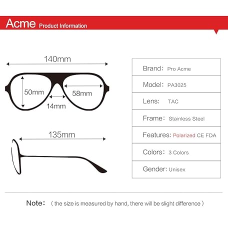 Thương hiệu Pro Acme là cái tên nổi tiếng được rất nhiều khách hàng trên thế giới chọn lựa. Với kiểu dáng đẹp mắt, sang trọng, sản phẩm Pro Acme Sunglasses Men Women Classic Aviator Glasses Glass Lens Aviator Glasses Unisex Aviator Sunglasses là sự lựa chọn hoàn hảo nếu bạn đang tìm mua một món cho riêng mình.