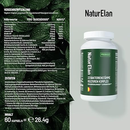 Sản phẩm Probio 23 Culture Complex, 200 Billion CbE/g, Multiple Bacterial Strains with Acacia Fibre, 1 Capsule per Day, with Lactobacillus & Bifidobacteria, Vegan, 60 CT, Intestinal Flora đang được bán với giá ưu đãi là $15.042 tại nước Đức.