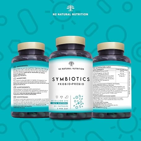 Thông tin sản phẩm Probiotics and prebiotics complex with inulin Probiotics High dose 40 billion KbE per dose, digestive enzymes. Contains lactobacillus and lactic acid bacteria. 60 capsules N2 Natural Nutrition