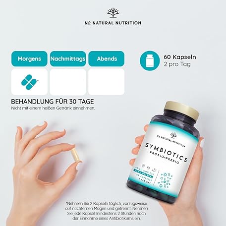 Sản phẩm Probiotics and prebiotics complex with inulin Probiotics High dose 40 billion KbE per dose, digestive enzymes. Contains lactobacillus and lactic acid bacteria. 60 capsules N2 Natural Nutrition đang được bán với giá ưu đãi là $25.3316 tại nước Đức.