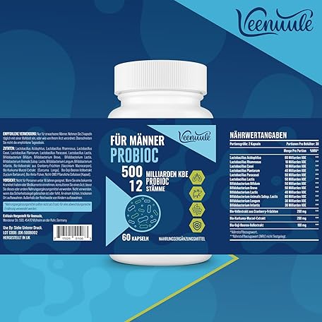 Sản phẩm Probiotics for Men, 12 Bacterial Strains with 500 Billion CFU per Daily Dose, High-Dose Cultures Complex with Cranberry, Turmeric and Goji (Pack of 60) đang được bán với giá ưu đãi là $17.8869 tại nước Đức.