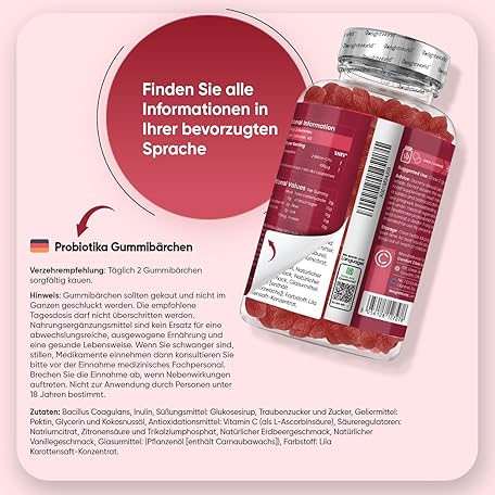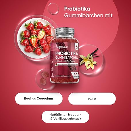 Sản phẩm Probiotics Gummy Bears with Inulin - 90 Vegan Gummies with Bacillus Coagulans - 2 Billion CFU per Serving - Natural Strawberry & Vanilla Flavour - Free from Magnesium Stearate - WeightWorld đang được bán với giá ưu đãi là $21.4839 tại nước Đức.