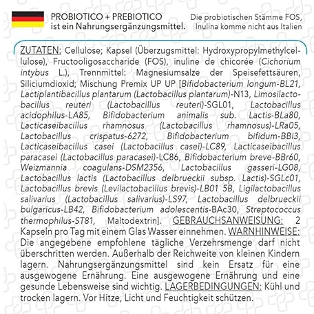 Thông tin sản phẩm Probiotics with Prebiotics, Inulin & FOS - 120 Capsules PiùLife - 40 Billion CFU from 20 Bacterial Strains - for Bloating Belly, for Microbiome & Intestinal Flora