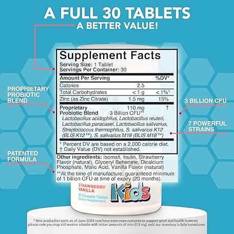 Thông tin sản phẩm Probiotika zur Zahnpflege und Kariesprävention für Kinder mit BLIS K12 und M18 – Von Zahnärzten entwickelte dentale Probiotika für Zähne und Zahnfleisch, 30 Kautabletten mit Erdbeer-Vanille-Geschmack