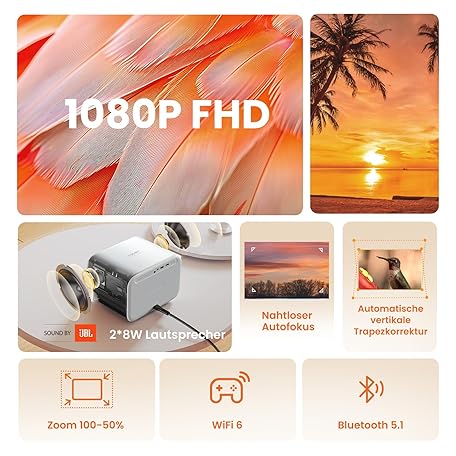 Sản phẩm Projector Sound by JBL, 1080P Native Projector, Yaber L2s Seamless Autofocus Video Projector, LED Projector with WiFi 6 and Bluetooth 5.1 Home Cinema Projector for Mobile Phone/Laptop, Compatible with TV Stick đang được bán với giá ưu đãi là $137.3182 tại nước Đức.