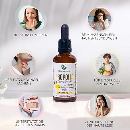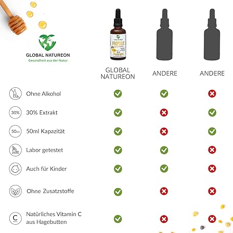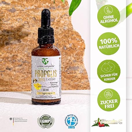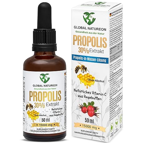 Sản phẩm Propolis-in-water solution extract 30% alcohol free (50 ml) tincture suitable for children and animals, natural vitamin C from rose hips, polyphenols, flavonoids and bioflavonoids, 100% natural đang được bán với giá ưu đãi là $26.4107 tại nước Đức.