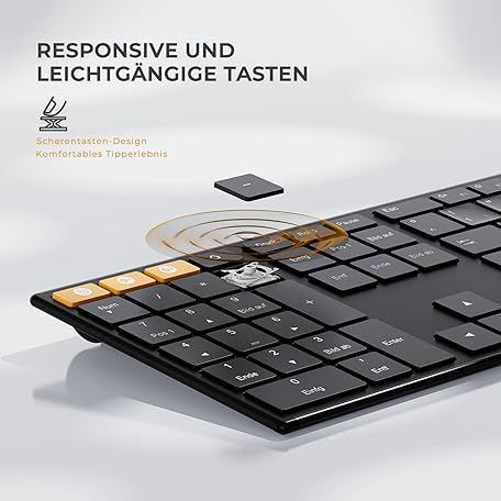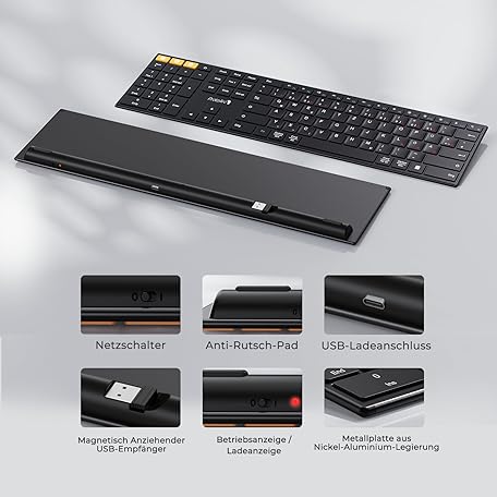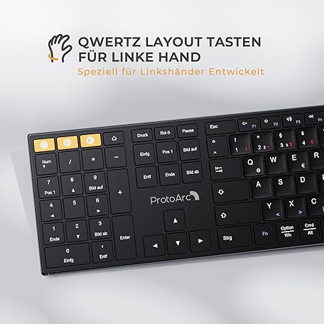 Thông tin sản phẩm ProtoArc XK21 2.4G Kabellos Linkshänder Tastatur, Bluetooth Funk Tastaturen für Linkshänder Flach Deutsch, Leise QWERTZ Layout Linke Numpad Tastatur mit DREI Multi-Device, Mac/Windows/Android