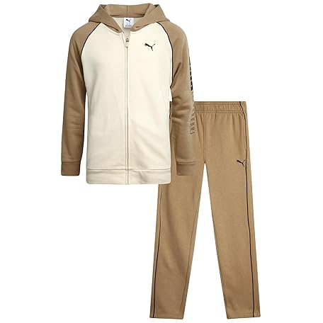 PUMA Boys Tracksuit Set - Boys 2 Piece Fleece Hooded Sweatshirt with Zip and Athletic Jogging Bottoms for Boys (Sizes 8-16)