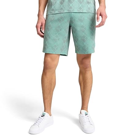 Thông tin sản phẩm PUMA Herren Graphic Fleece Shorts, Logomania Alloverprint Green Moon Ss25, XX-Large