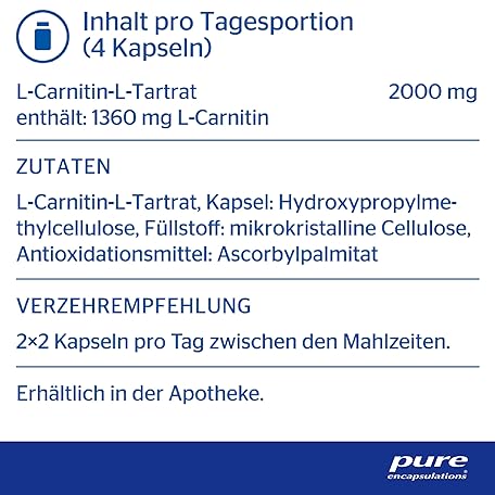 Thông tin sản phẩm Pure Encapsulations - L-Carnitin - Aminosäure-Derivat - 60 Kapseln