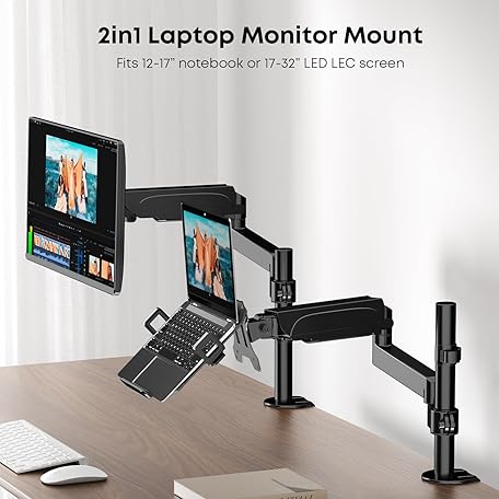 Thông tin sản phẩm PUTORSEN Monitor Arm with Laptop Mount for 17 to 32 Inch LCD LED Screen and up to 17 Inch Notebook, 55.5 cm Height Adjustment (30.8 cm Rod), Tilt, Pan & Rotate