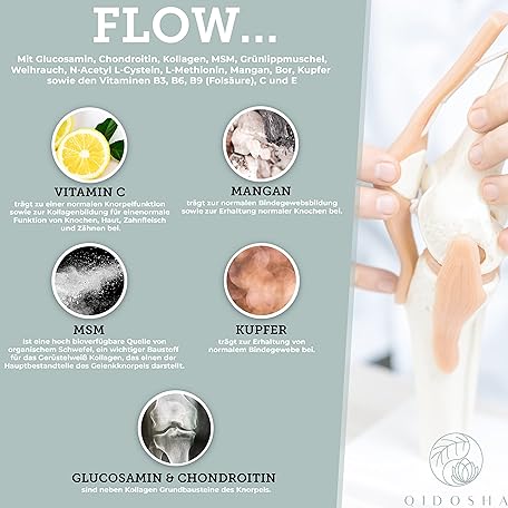 Thông tin sản phẩm QIDOSHA® Glucosamine Chondroitin Joint Complex Capsules, 180 Pieces/Glass, with Glucosamine, Chondroitin, Collagen, MSM, Green-lipped Mussel, Frankincense, Cysteine, Methionine, Manganese, Boron