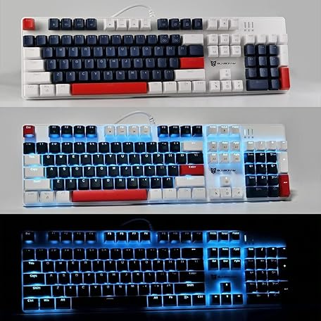 Sản phẩm Qisan Wired Mechanical Gaming Keyboard Blue LED Backlit Red Switch Full Size 104 Keys US Layout (Blue/White/Red Combination) đang được bán với giá ưu đãi là $50.0964 tại nước Đức.
