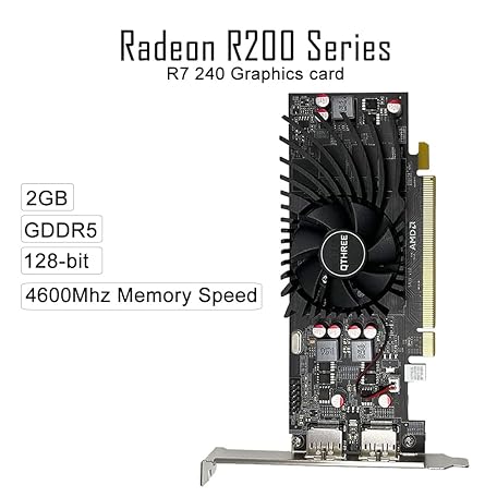 Thông tin sản phẩm QTHREE Radeon R7 240 Grafikkarte, 2G, D5, 128-bit, 2X HDMI, PCI-Express x8 3.0, Grafikkarte für PC