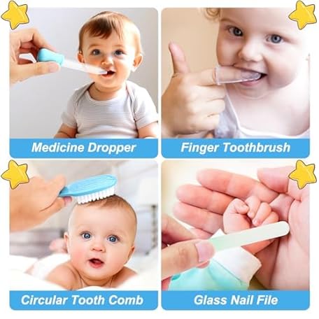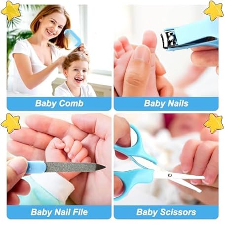 Thông tin sản phẩm Qunlions life Baby Gesundheitswesen und Pflegeset, Säuglingssicherheitspflege Set mit Haarbürste, Kamm, Nagelknipser, Baby Essentials Kit für Neugeborene Mädchen Jungen (Blau 14 in 1)