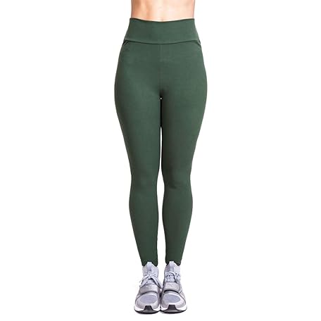 QZUnique Damen Knöchellange Fußlose elastische Leggings Yogahose, 30-grün, Medium Mehr