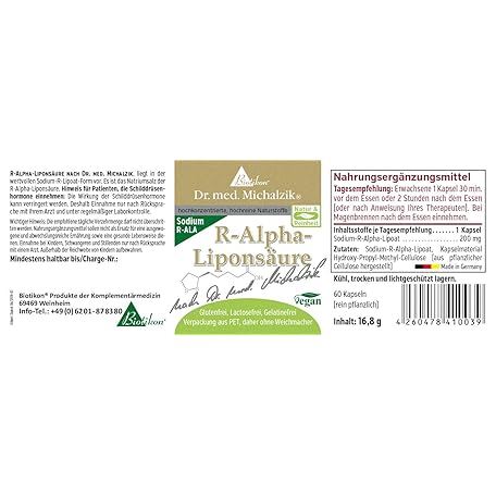 Sản phẩm R-Alpha-Lipoic Acid 200 mg, by Dr. Michalzik M.D - Free of additives, 60 capsules đang được bán với giá ưu đãi là $25.5278 tại nước Đức.