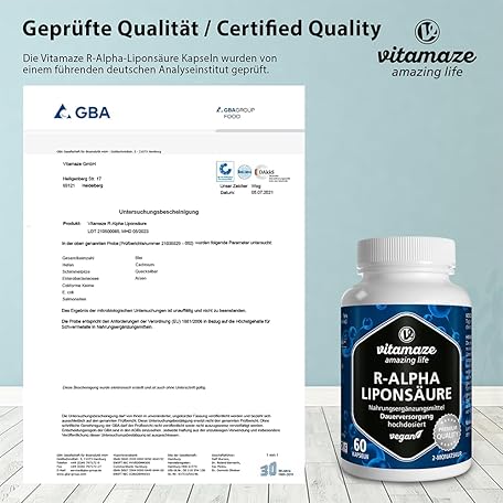 Thương hiệu Vitamaze - amazing life là cái tên nổi tiếng được rất nhiều khách hàng trên thế giới chọn lựa. Với kiểu dáng đẹp mắt, sang trọng, sản phẩm R-Alpha Lipoic Acid High Dosage, 200 mg per Capsule, Vegan, 2 Month Treatment, Natural Form of Thioctic Acid, Quality Product, Bioactive Dietary Supplement without Unnecessary Additives, Made in Germany là sự lựa chọn hoàn hảo nếu bạn đang tìm mua một món cho riêng mình.
