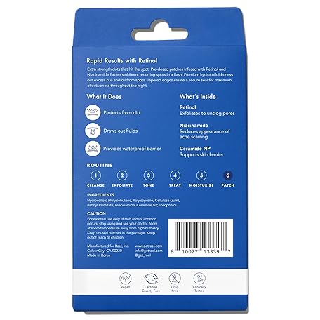 Thông tin sản phẩm Rael Miracle Anti Pimple Patch Retinol - Korean Skincare, Pimple Patches for Stubborn Acne, Ceramides, Niacinamide, Hydrocolloid Face Plasters Overnight, Vegan, Cruelty Free (Pack of 72)