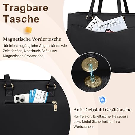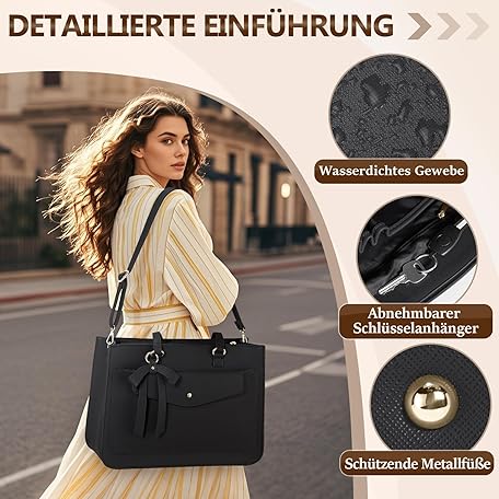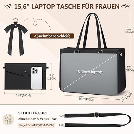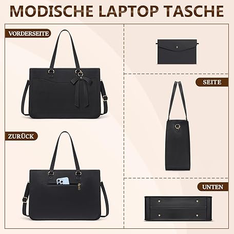 • RAINSMORE Handbag Women's Large Shopper Bag with Clutch Laptop Bag Women's 15.6 Inch Work Bag Briefcase PU Leather Business Bags Teacher Bag