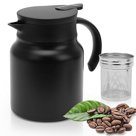 RANJIMA 1000ml Kaffeekanne, Thermo Kaffeekanne, Schwarz Thermoskanne mit Siebeinsatz, Doppelwandingem Edelstahl Teekanne Thermo für Heißgetränke, Isolierkanne Käffeekanne für Kaffee, Tee, Milch