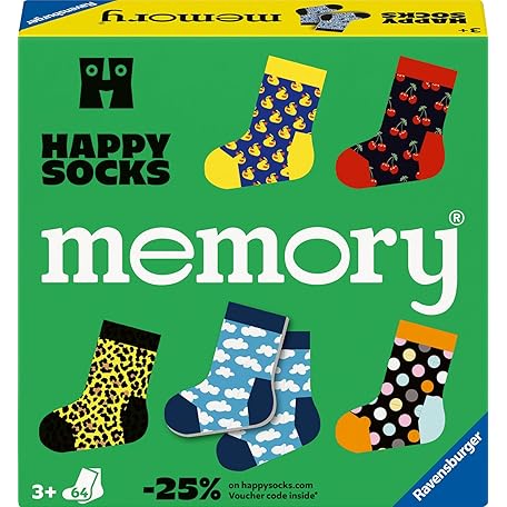 Ravensburger 24702 Memory® Happy Socks. The Ravensburger Classic Game in Cooperation with Happy Socks. 32 Fun Colourful Socks