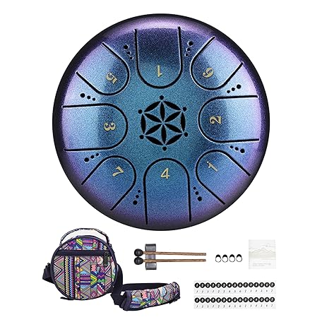 Thông tin sản phẩm Rayzm Titanium Steel Tongue Drum with Carry Bag, Steel Tongue Drum, 5 Inch (13 cm) 8 Note Handpan Tank Drum Kit, C Major Tongue Drum Drum Instrument