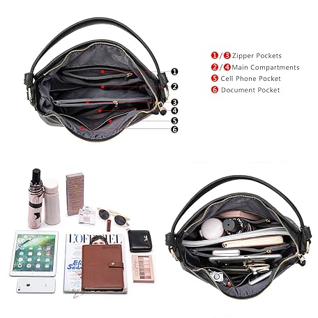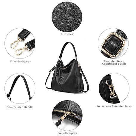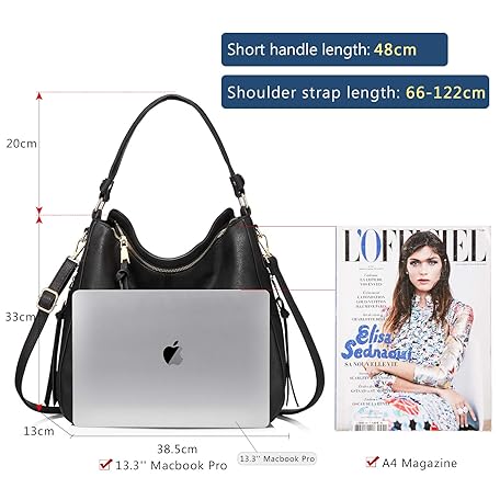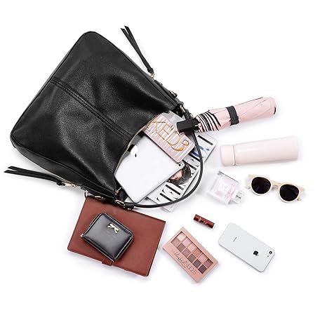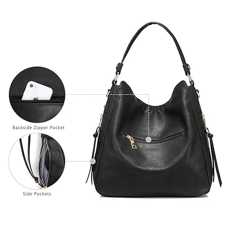 Thông tin sản phẩm Realer Handtasche Damen Mittelgroß, Shopper Tasche Groß, PU Leder Schultertasche Umhängetasche, Vintage Hobo Bag für Büro Arbeit Einkauf, Schwarz