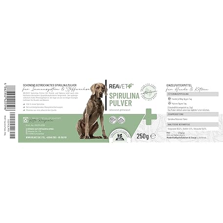 Sản phẩm ReaVET Spirulina Powder for Dogs & Cats 250 g - Microalgae Supports Skin & Coat, Immune System & Metabolic Processes, Vitamins & Minerals đang được bán với giá ưu đãi là $21.2877 tại nước Đức.