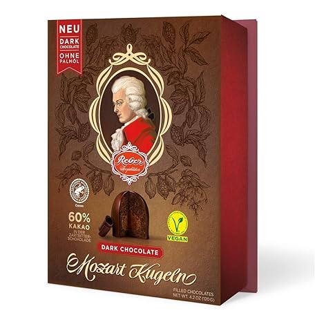 Thông tin sản phẩm Reber Mozart Balls Dark Chocolate, Pack of 6 with Marzipan and Nougat, Vegan, 1 x 120 g