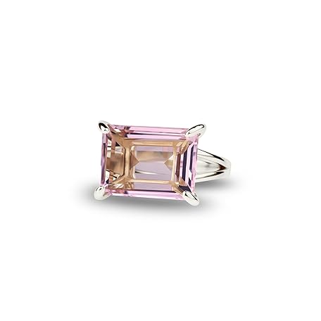 Rectangular Rose Quartz Ring - Artwork Statement Silver Rings - Elegant Crystal Jewellery for Fashion and Gifts for Women - Individual Material - Available in All Ring Sizes
