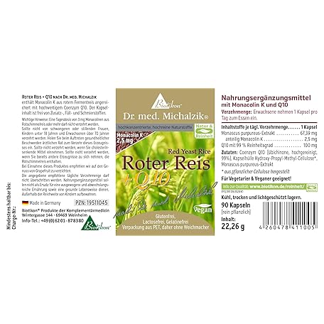 Sản phẩm Red Rice + Q10 Dr. Michalzik - Fermented Red Rice with Q10 - Monascus Purpueus Extract [67.39 mg] | Coenzyme Q10 [100 mg] - No Additives - From Biotikon® đang được bán với giá ưu đãi là $79.3738 tại nước Đức.