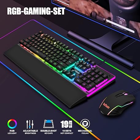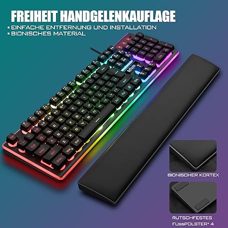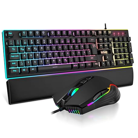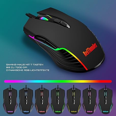 Thông tin sản phẩm RedThunder K10 Gaming Keyboard and Mouse Set, QWERTZ DE Layout, Metal Plate and Wrist Rest, RGB Backlight and 7D with Ergonomic for PC Gamers (Black)