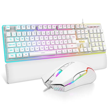 Sản phẩm RedThunder K10 Gaming Keyboard and Mouse Set, QWERTZ DE Layout, Metal Plate and Wrist Rest, RGB Backlight - and 7D with Ergonomic - for PC Mac Gamer (White) đang được bán với giá ưu đãi là $75.8095 tại nước Đức.
