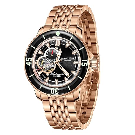 REEF TIGER RGA3039-PBP Men's Automatic Analogue Watch with Rose Gold Strap, Ribbon