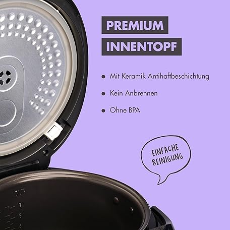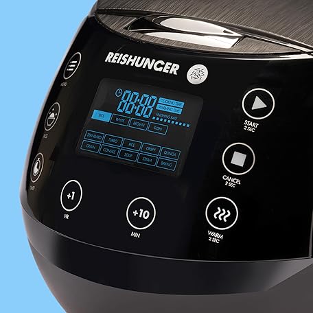 Thương hiệu Reishunger là cái tên nổi tiếng được rất nhiều khách hàng trên thế giới chọn lựa. Với kiểu dáng đẹp mắt, sang trọng, sản phẩm REISHUNGER Digital Rice Cooker and Steamer Black | 1.5 litres for 8 People | Keep Warm Function, Timer and Premium Inner Pot | Multi Cooker, 12 Programmes, 7-Phase Technology là sự lựa chọn hoàn hảo nếu bạn đang tìm mua một món cho riêng mình.